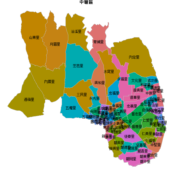 桃園市中壢區乡镇地图shp数据(台湾省)WGS84坐标系