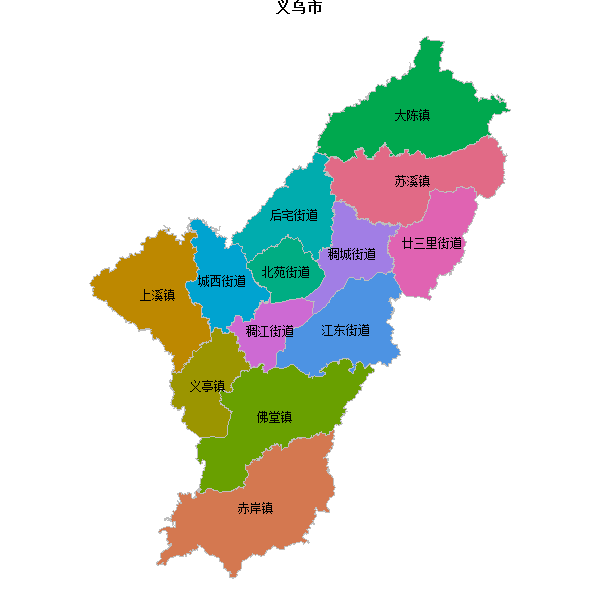 金华市义乌市乡镇地图shp数据(浙江省)WGS84坐标系